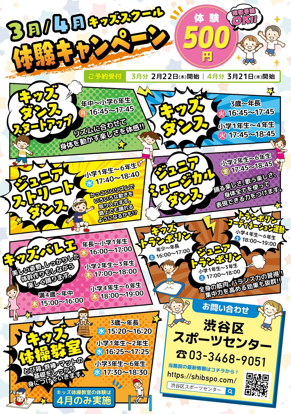 3月4月は対象のキッズスクールが500円で体験頂けます。