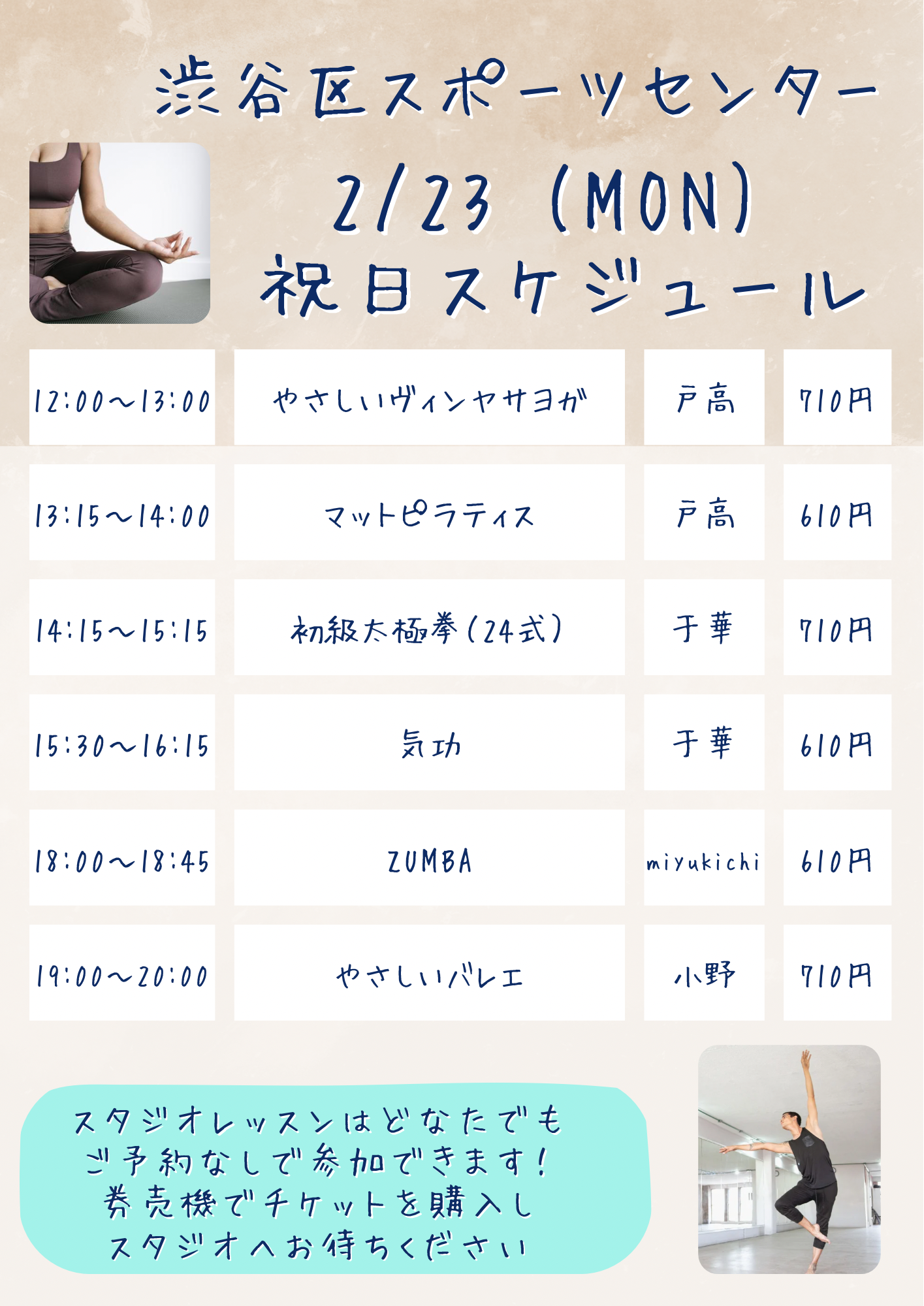 【スケジュール】2/23(月)祝日スケジュールのお知らせ