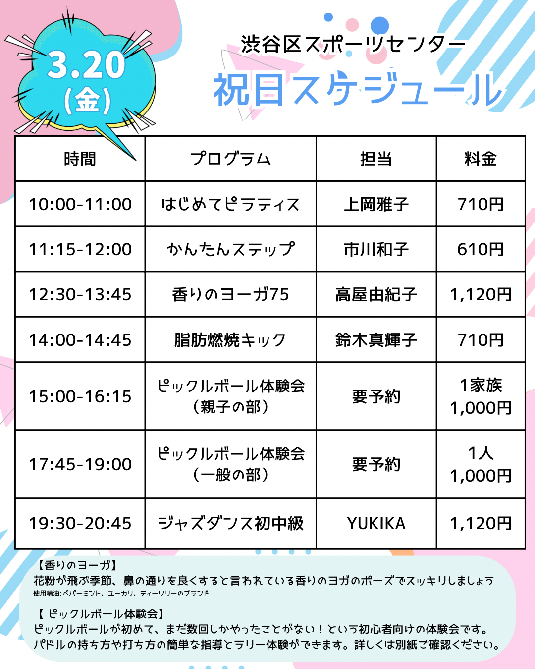 また、3月20日は初心者向けのピックルボールのイベントを行います。